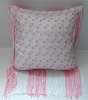 cushion size:40*40cm color:pink and white with different colors ofstrings and nicebeads on four sides, it can be used to decorate the sofa, bed and the chair.
